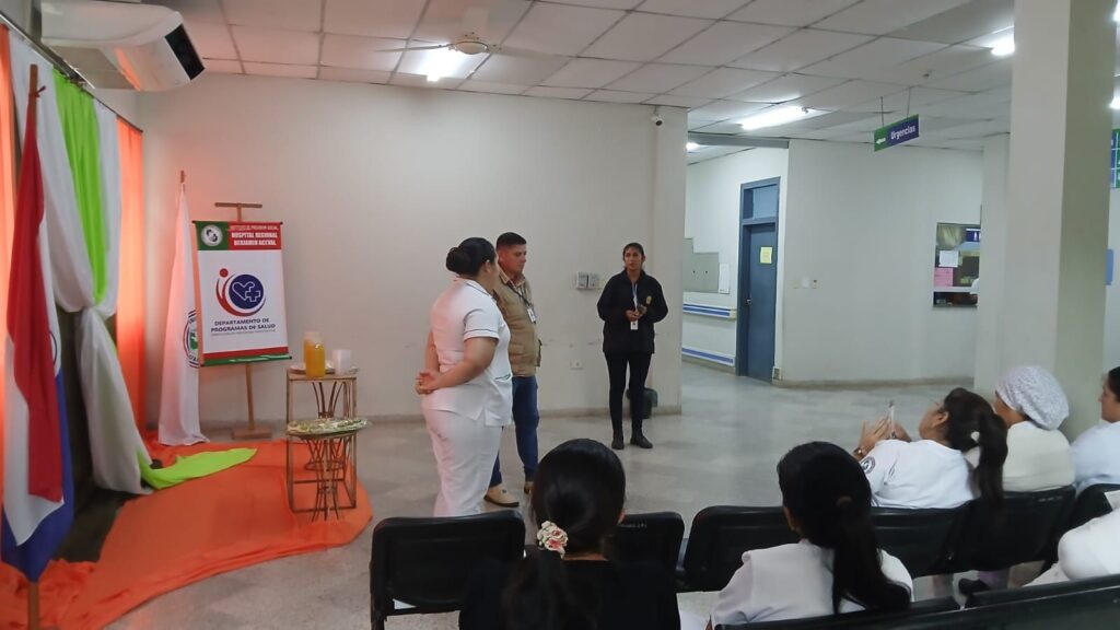 La actividad tuvo lugar en el Hospital Regional de Benjamín Aceval y en la sede local del Instituto de Previsión Social (IPS), donde el equipo técnico brindó charlas dirigidas al personal de salud.