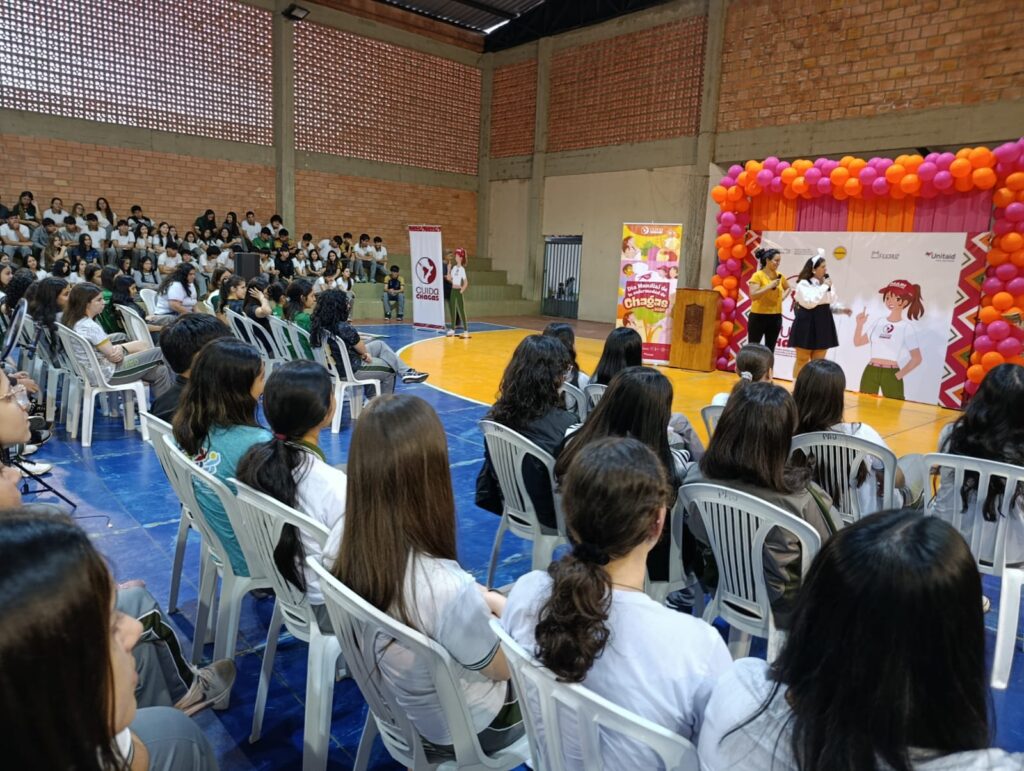 Más de cien estudiantes del nivel medio participaron de una charla informativa a cargo de la Dra. Mónica Ramírez, gerente de implementación del proyecto en Paraguay y jefa del Programa Nacional de Control de la Enfermedad de Chagas del Servicio Nacional de Erradicación del Paludismo (SENEPA). Durante su intervención, explicó el origen del nombre de la enfermedad y recordó que el Día Mundial de Chagas se conmemora cada 14 de abril, en alusión al descubrimiento realizado por el médico brasileño Carlos Chagas en 1909.